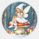 Sticker Rond Adorable Little Christmas Fairy on Mushroom