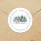 Cette conception présente un sceau d'enveloppe de Noël, avec une adresse de retour, une typographie de texte en cercle, avec des arbres à aquarelle, une verdure élégante, classique traditionnel, un simple vintage, forêt de bois, vacances, scène hivernale.