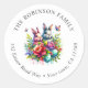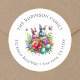 Étiquette d'adresse de retour personnalisée de Pâques de lapin mignon floral autocollant rond.