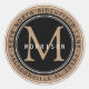 Sticker Rond Adresse, Monogramme dans un Burlap noir et tan