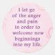 J'ai lâché la colère et la douleur pour accueillir de nouveaux débuts dans ma vie. Trouver d'autres affirmations positives et inspiration à www.MyDreamsMatter.com
