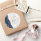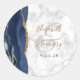 Sticker Rond Agate Marine Blue Gold Script Mariage en marbre