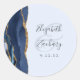 Sticker Rond Agate Script Navy Pale Blue Gold Wedding