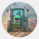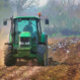 Préparation pour le next crop. The tractor plows (ploughs) the field and wild birds look for food in the freshly turned soil. Watercolor England.