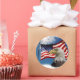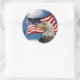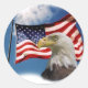 Montré est une image du drapeau américain et un profil fier d'un aigle chauve.