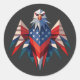 Cette image présente un aigle chauve conçu dans un style origami géométrique avec un thème patriotique. Les ailes de l'aigle sont larges et présentent un motif de couleurs rouge, blanc et bleu avec des étoiles, rappelant le drapeau américain. L'ensemble est moderne et artistique, mettant en évidence le symbolisme majestueux et puissant de l'aigle chauve comme emblème des Etats-Unis. Cette image capture parfaitement des éléments de patriotisme et est idéale pour l'utilisation dans les vêtements et les produits de design personnalisés qui express la fierté américaine.