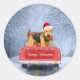 Sticker Rond Airedale Terrier Chien en Neige assis à Noël