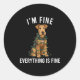 Sticker Rond Airedale Terrier Christmas I'm Fine Everything Is
