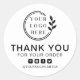 Ajouter Logo Social Media Order Merci Custom Stickers Étiquettes présente votre logo et texte personnalisé comme le site Web et vous remercie pour l'achat message et les détails des médias sociaux en noir sur un arrière - plan blanc. Personnalisé en modifiant le texte dans les zones de texte fournies. Parfait pour les petites entreprises. Conçu par ©Evco Studio www.zazzle.com/store/evcostudio