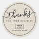 Élégant commerce merci autocollants avec un clair brun imprimé lin d'image look arrière - plan et votre logo personnalisé. Texte personnalisable : "Merci pour votre entreprise" avec votre nom d'entreprise/URL ci-dessous et logo ci-dessous. Toutes les polices et les couleurs de police sont personnalisables. Déplacez et redimensionnez le logo avec l'outil de conception.