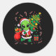 Sticker Rond Alien Christmas Tree Lights Xmas Funny Alien