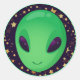 Sticker Rond Alien Vert Très Sympa Sur Les Étoiles D'Or Amusant