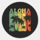 Sticker Rond Aloha Hawaiian Island Palm Trees Surfboard Beach H