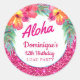 Sticker Rond Aloha Luau Rose Pailleté Hibiscus Tropical