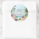Dites merci avec une touche tropicale en utilisant cet autocollant rond personnalisé sur le thème de la plage « Aloha & Mahalo ». Avec une scène d'île aquarelle présentant des hibiscus vibrants, des palmiers et des détails de noix de coco, cet autocollant personnalisé est parfait pour les cadeaux d'invités de maison de plage, les mariages de destination, les fêtes de luau ou les sacs de bienvenue tropicaux. Ajoutez le nom de votre famille, l'événement ou un message personnel pour une touche mémorable de paradis.