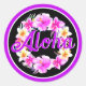 Sticker Rond Aloha Tropical Luau Anniversaire Néon Violet