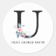 STICKER ROND ALPHABÈTES FLORAUX BLEUS DOUX NOM LETTRE U