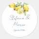 Amalfi Positano Vietri bleu Majolica tuiles citrons autocollants modèle mariage mariés et noms de mariés, bouquet méditerranéen d'agrumes avec citrons autocollants de mariage