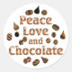 Les amateurs de chocolat savent que pour avoir la paix et l'amour dans votre vie, vous avez besoin de chocolat. Profitez de ce design délicieux avec les bonbons au chocolat et les mots Peace Love et Chocolate.