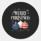 Sticker Rond American Flag Merry Christmas Tree Baubles Us Patr