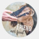 Cet autocollant végétalien présente une chèvre amusante et amicale qui demande à un ami humain de l'emporter. Les mots "Friend not food" sont imprimés ci-dessous en blanc et brun. C'est un cadeau parfait pour chaque ami végétalien, ou pour toute personne qui soutient un mode de vie sans viande compatissant.