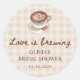 Ajoutez une touche sucrée à votre célébration avec cet autocollant rond classique Faveur de douche de mariage au café Gingham "Love is Brewing". Présentant un latte à l'aquarelle avec de l'art de mousse en forme de cœur, des grains de café et un fond gingham beige, ce design inspiré d'un café cosy apporte chaleur et charme à vos faveurs de douche de mariage. Parfait pour un événement sur le thème automnal ou neutre, ces autocollants s'accordent parfaitement avec les invitations, les étiquettes-cadeaux et la décoration "Love is Brewing" de la collection.