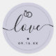 Enregistrez la date avec l'amour script, date et mariage graphique anneaux en lave claire violet autocollant.