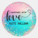 Sticker Rond Amour fait main paillettes holographiques pastel c