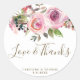 Sticker Rond amour & merci violet floral mariage faveurs autoco