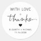 Un autocollant de remerciement moderne pour vos faveurs de mariage et des cartes de remerciement avec "With Love + Thanks" en typographie simple et un script chic élégant, et vos noms et date mariage.