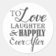 Cet élégant autocollant de mariage comporte l'expression typographiquement "To Love, Laughter, and Happily Ever After"