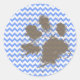 Sticker Rond Amusant Empreinte de patte boueux sur Blue Chevron