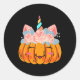 Sticker Rond Amusant Halloween Thanksgiving Cute Unicorn Citrou