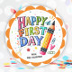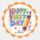 Sticker Rond Amusant Joyeux Premier Jour Du Crayon De L'École