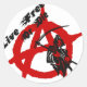 Symbole d'anarchie rouge avec superposition de la Faucheuse noire et texte : "Live Free or Die"