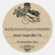 Ajoutez une sensation de cuisine de campagne à vos projets de conserverie avec cet autocollant de étiquette de conserverie à l'aspect ancien du parchemin. Image de regroupement végétale au centre supérieur avec trois lignes de texte à customiser. Parfait pour les bocaux de mason et d'autres projets de conserverie.
