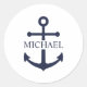 Sticker Rond Ancre bleue marine Nom personnalisé