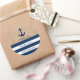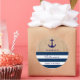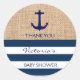 Autocollants de baby shower nautique personnalisés / customisés / étiquettes pour vos faveurs. Burlap avec ancre et rayures bleu marine et blanc.