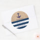 Sticker Rond Ancre Burlap bleu marine