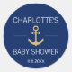 Sticker Rond Ancre d'or bleu marine BABY SHOWER blanc