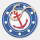 Un autocollant à thème nautique avec ancre rouge avec corde et hublot bleu de navire. Coordination de l'invitation disponible en magasin.