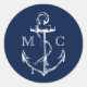 Sticker Rond Ancre marine bleu marine Monogramme