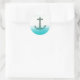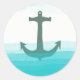 Sticker Rond Ancre nautique Plage Bleu Turquoise Été Aquarelle