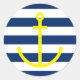 Marine et bandes blanches avec ancre jaune pour le nautique en vous.