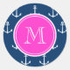 Sticker Rond Ancres Bleu Marine Motif, Monogramme Rose Chaud