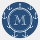 Sticker Rond Ancres bleu marine Motif, votre monogramme