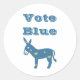 Sticker Rond Âne démocrate et coeurs VOTE BLEU
