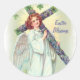 Le magnifique art vintage de Pâques présente un bel ange portant une croix recouverte de fleurs d'Hydrangea. Le texte peut être customisé ou supprimé.