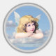 Art vintage avec la peinture de joli ange fille reposant sur des nuages blancs et moelleux dans le ciel.