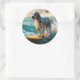 Sticker Rond Anglais Setter Beach Surfing Painting